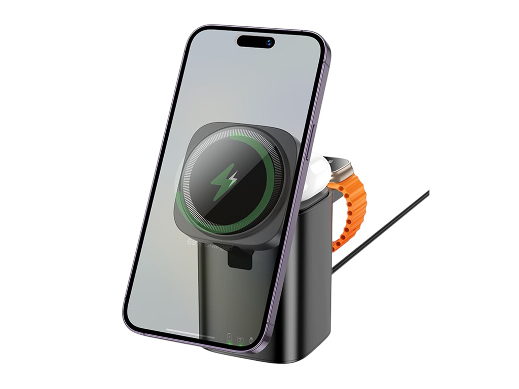 Бездротовий зарядний пристрій Hoco CQ20 поєднує стиль, надійність та функціональність, дозволяючи швидко заряджати до трьох гаджетів без плутанини з кабелями. Підтримує бездротову зарядку та відрізняється широкою сумісністю.