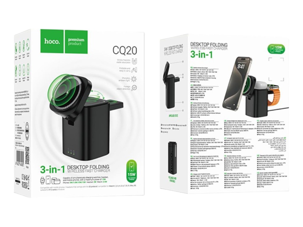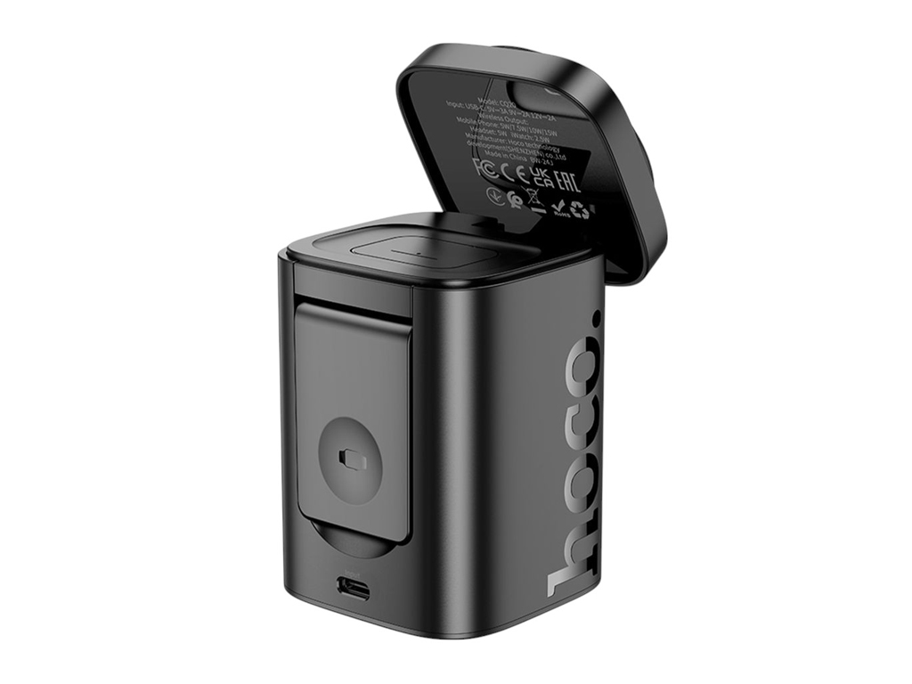 Бездротовий зарядний пристрій Hoco CQ20 3-in-1, 15 Вт, Magnetic (iWatch), чорний