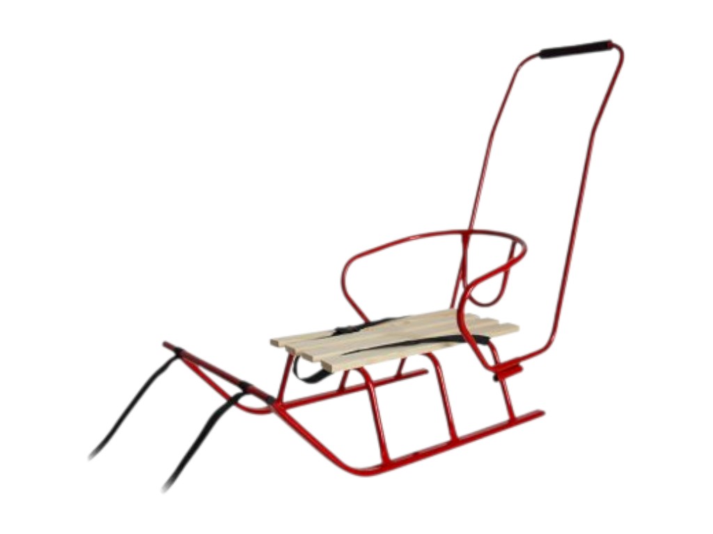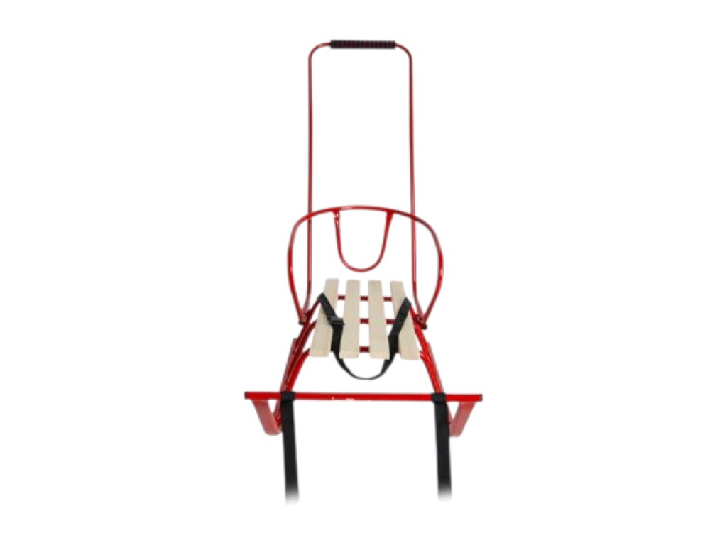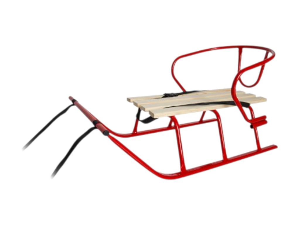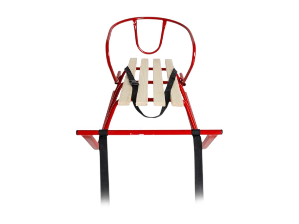 Санки Лайка червоні зі спинкою, металеві з дерев’яним сидінням, Vitan