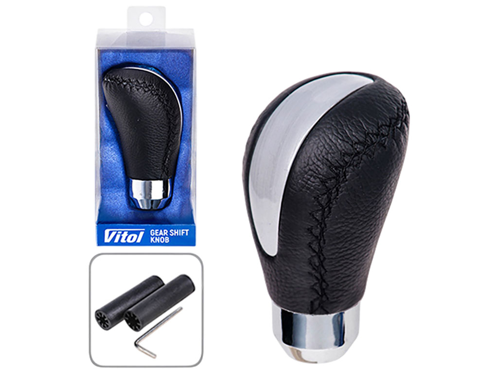 Декоративна ручка коробки передач AX-J2381 виготовлена з комбінації натуральної шкіри та металу. Чорне забарвлення та ергономічна форма підходять до салону більшості автомобілів. Універсальне кріплення дозволяє встановлення на різні моделі. У комплект входять втулки та гвинти для фіксації. Розміри: 7,5 x 15,5 x 5,5 см, вага – 0,14 кг. Поставляється в коробці.