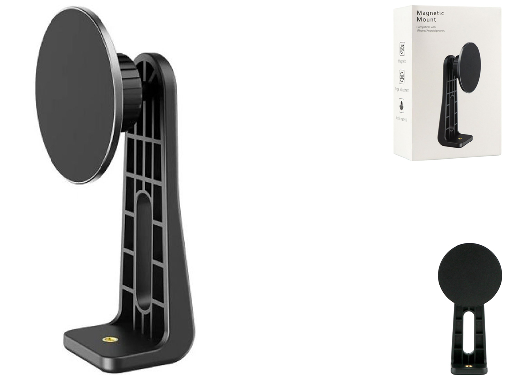 Магнітний тримач для телефона на штатив - це універсальний аксесуар, створений для максимально зручної та безпечної фіксації смартфонів на штативі. Магнітний спосіб кріплення смартфона і практична, надійна конструкція роблять його ідеальним вибором для повсякденного використання. Невеликі розміри і вага - мінімальне навантаження на штатив і зручне зберігання. Надійна конструкція з міцного пластику та алюмінієвого сплаву. Плоска основа з різьбовим кріпленням 1/4" для встановлення на штатив. Кругла панель з вбудованими магнітами для фіксації iPhone 12-16 та інших смартфонів з магнітним чохлом, додатковими кільцями або пластинами. Кульовий шарнір для налаштування кута нахилу і повороту смартфона на всі 360°.