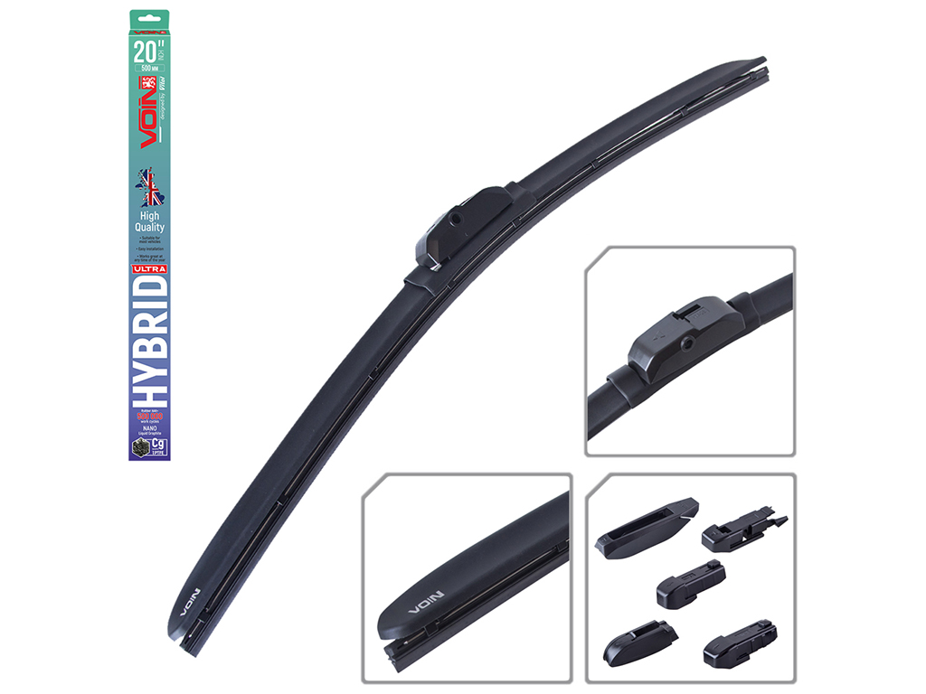 Щітки склоочисника гібридні VOIN 20" 50см (TPX6M-20") HYBRID Ultra, 6 адаптерів (VHU-20500)