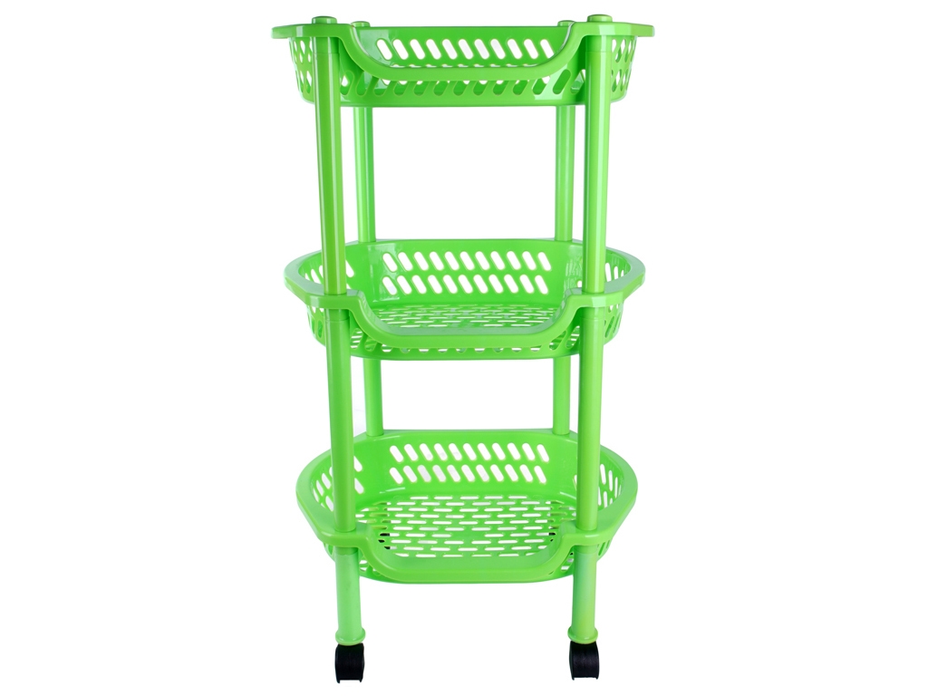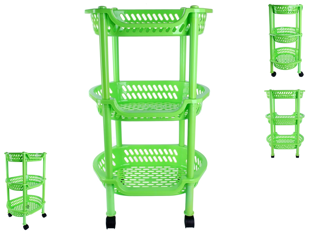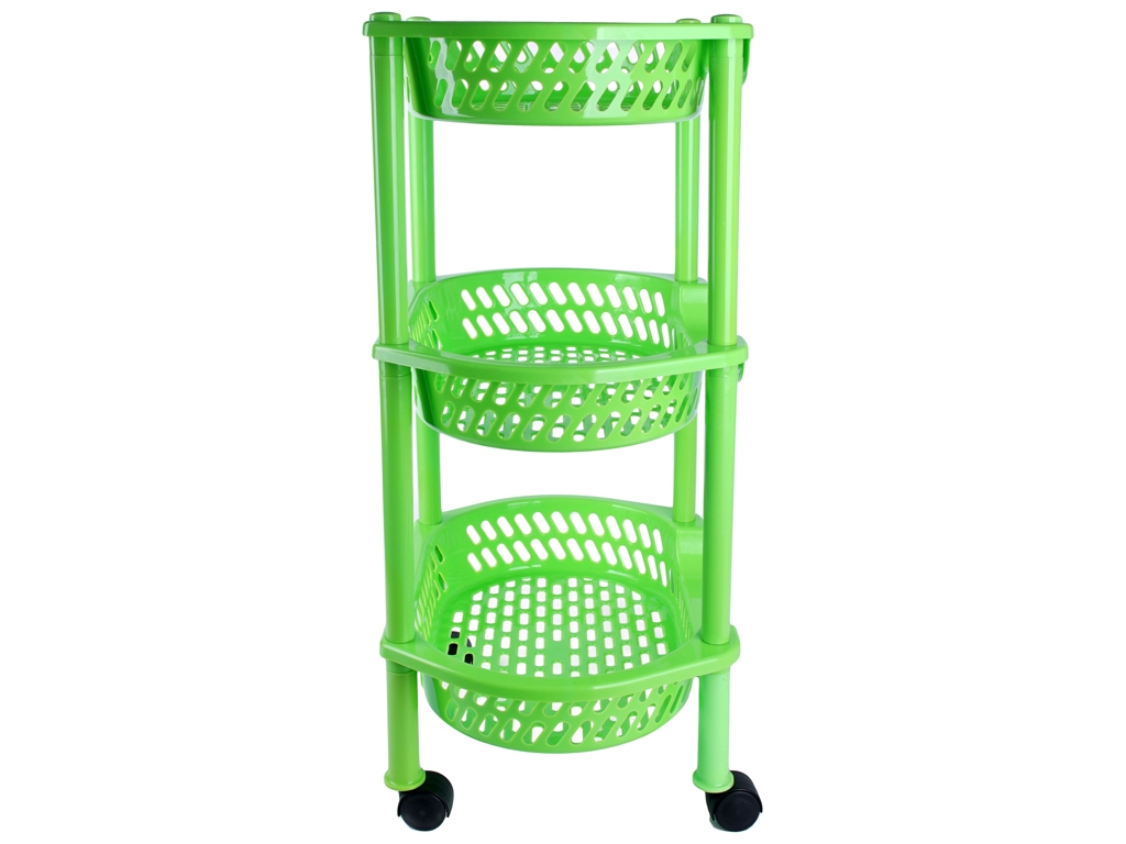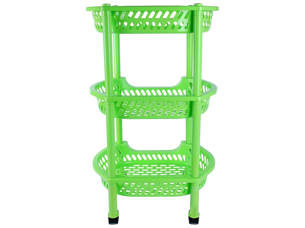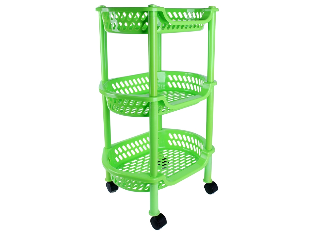 Етажерка овальна триярусна Консенсус на коліщатках - зручне і стильне рішення для організації простору. З її допомогою легко створити затишні куточки зберігання у вашому будинку або офісі. Зручні розміри етажерки забезпечують достатньо місця для розміщення різних предметів, а коліщатка роблять переміщення по приміщенню простим і зручним. Висота з коліщатками 69см, ширина 40,5см, довжина 30см, відстань між полицями 22см, діаметр коліс 4см. Матеріал - пластик. Кольори в асортименті.