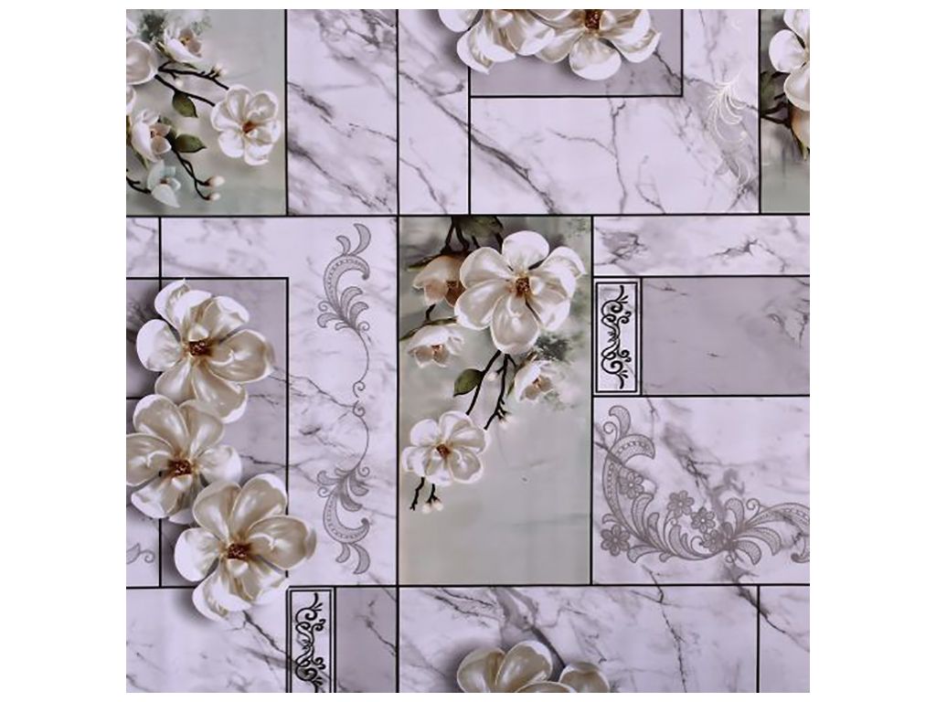 Клеєнка ПВХ glossy, 1.37×20 м, тришарова, глянсова, тканинна основа, колір сірий з білими квітами