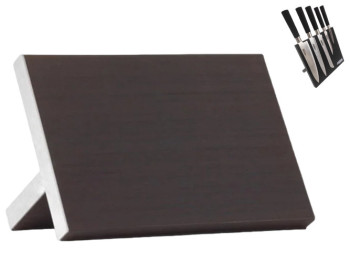 Магнітна настільна підставка призначена для безпечного та зручного зберігання ножів, забезпечуючи легкий доступ до них і унеможливлюючи випадкові контакти з іншим кухонним приладдям. Виготовлена з дерева з магнітним елементом, вона надійно утримує ножі, запобігаючи ушкодженню і зберігаючи ріжучу кромку. Стильний дизайн і оптимальні розміри дають змогу розмістити підставку в зручному місці на кухні, забезпечуючи комфортне й організоване зберігання всіх необхідних інструментів.