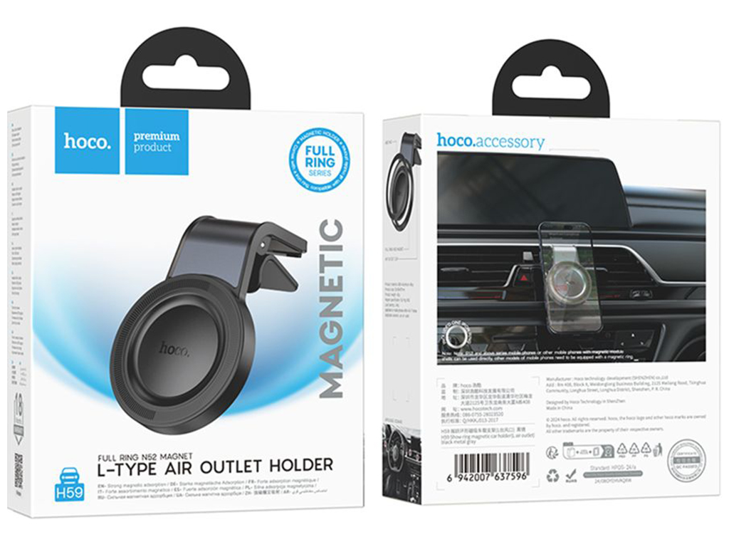 Автомобільний магнітний тримач Hoco H59 – це зручне та стильне рішення для надійної фіксації смартфона у вашому автомобілі. Завдяки потужним магнітам та ергономічному дизайну він забезпечує безпечне користування телефоном під час поїздок, не перекриваючи огляд дороги. Компактні розміри та привабливе поєднання чорного та сірого кольорів роблять Hoco H59 ідеальним аксесуаром для будь-якого авто.