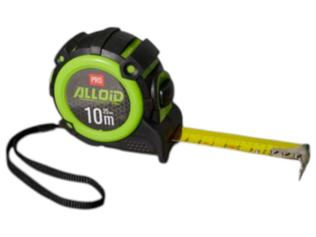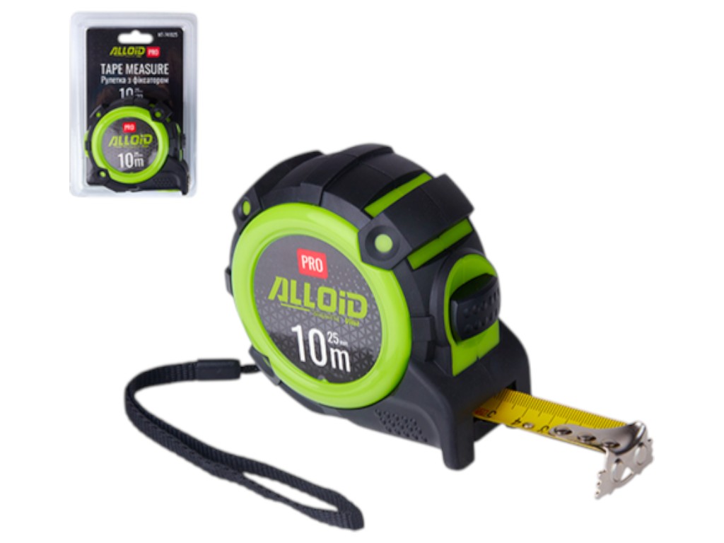 Рулетка вимірювальна Alloid Pro, 10 м/25 мм, автостоп, сталева стрічка, корпус із гумою