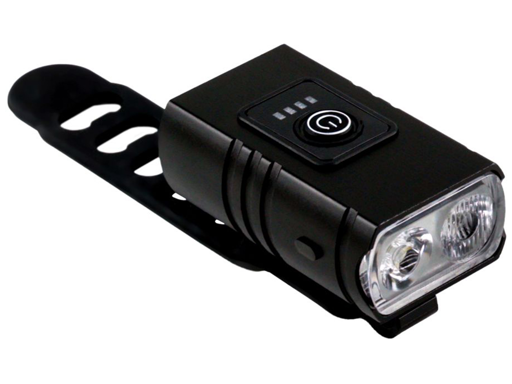 Комплект переднього і заднього освітлення для забезпечення безпеки велосипедистів в будь-яких умовах. Якісні електронні компоненти та корпусні деталі з алюмінієвого сплаву та міцного пластику. Надійне складання відповідно до стандарту IPX4 - захист від великої кількості бризок води з усіх боків. Практичне знімне кріплення з силіконовим ременем для зручної і надійної фіксації з можливістю обертання на всі 360°. Ємний вбудований акумулятор для забезпечення тривалого часу роботи, який залежить від режиму роботи. Роз'єм мicro-USB для зарядки і механічна кнопка для включення і налаштування з вибором режиму роботи. Передній ліхтар з двома потужними світлодіодами стандарту T6 і 6 режимами роботи (прожектор, точкове світло, стробоскоп та інші). Задній ліхтар з досить потужними світлодіодами і червоним дифузором, який створює яскравий і насичений світловий сигнал. Комплект поставки: передній ліхтар, задній ліхтар, 2 кріплення з силіконовими ременями і 2 кабелі USB - мicro-USB для зарядки.