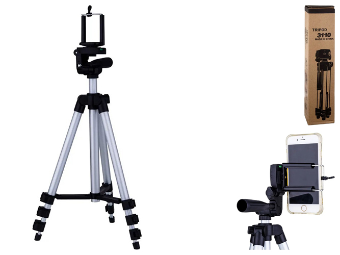Тринога 3110 - універсальне рішення для ваших пристроїв. Аксесуар допоможе зробити якісну зйомку фото і відео на смартфони шириною 60-80 мм, завдяки наявному тримачу, який фіксується болтовим з'єднанням, що дозволяє закріпити і інший, сумісний з даним кріпленням, обладнання. Телескопічна конструкція основного штатива з двома секціями та трьох ніжок з чотирма секціями та наявними фіксаторами надає можливість регулювати висоту для більш зручної експлуатації. Максимальна довжина становить 1020 мм, в складеному стані - 345 мм. Практична реалізація голівки триноги з рукояткою дозволяє легко і плавно регулювати кут зйомки на всі 360 градусів і змінювати положення утримується гаджета для горизонтального або вертикального використання. Модель виготовлена з міцного пластику, відмінно витримує навантаження. Тринога комплектується чохлом, що спростить його транспортування і забезпечить збереження.