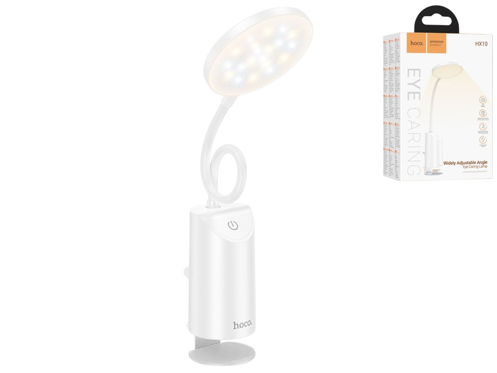 Лампа настільна з кліпсою Hoco HX10, 2W, 3000K-5000K, 1200 мАг, ABS пластик, 120×62×450мм, білий