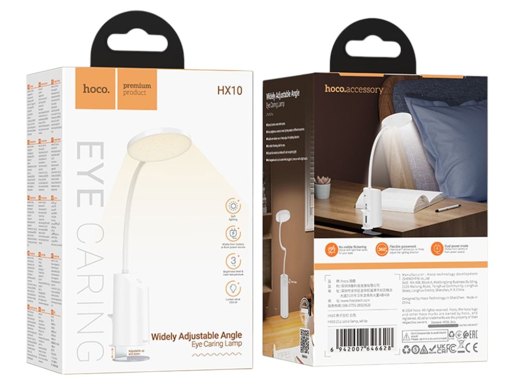 Настільна лампа Hoco HX10 з кліпсою - це зручний та компактний освітлювальний пристрій, створений для забезпечення комфортного освітлення в будь-яких умовах. Мобільна та ергономічна конструкція з гнучкою ніжкою дозволяє легко налаштувати кут нахилу світлової панелі. Лампа підходить для використання на столі, полиці або ліжку, забезпечуючи потрібний рівень освітленості для роботи або відпочинку.