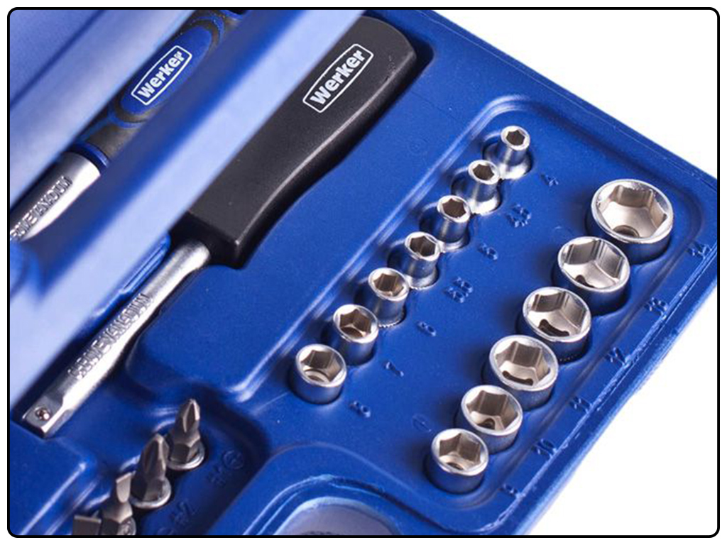 подовжувач 1/4 дюйма 50мм; подовжувач 1/4 дюйма 100мм; кардан 1/4 дюйма; вороток-викрутка 1/4 дюйма 150мм; вороток 1/4 дюйма з плаваючою головкою 115мм; гнучкий вал 1/4 дюйма; тріскачка 1/2 дюйма 36 зубців (гумова ручка); подовжувач 1/2 дюйма 125мм; подовжувач 1/2 дюйма 250мм; кардан 1/2 дюйма; перехідник 3/8х1/2 дюйма з отвором. Універсальний набір інструмента Werker 1/4 "і 1/2", 82 предмета 6 граней UN-1082П. Інструмент ТМ Alloid - висока якість матеріалів, ергономічний, яскравий дизайн інструментів і упаковки. Повністю відповідає вимогам ГОСТу, а також відповідає високим міжнародним стандартам. Підійде пересічному споживачеві для не професійною роботи. Інструменти з надійною хром-ванадієвої сталі. Упаковка пластиковий кейс.