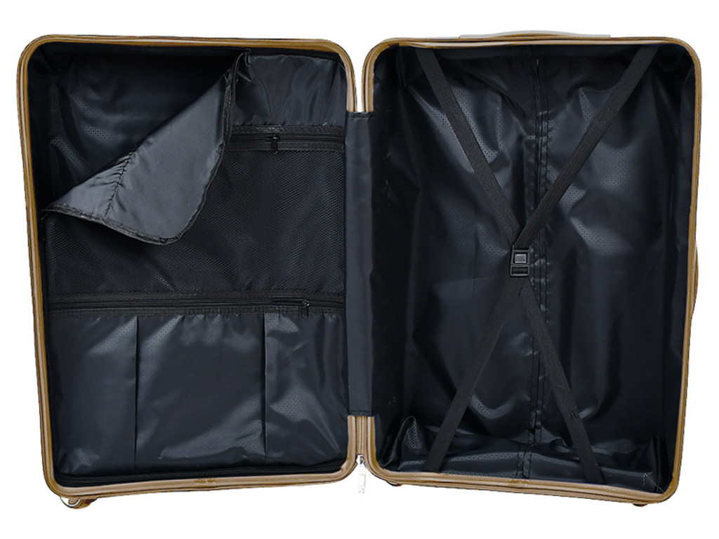 Телескопічна алюмінієва ручка з регулюванням висоти, зручні бокові ручки для перенесення та кодовий замок забезпечують комфорт і безпеку використання. Усередині валіз — ремені для фіксації речей і місткі кишені на блискавці. Чотири поворотні колеса обертаються на 360°, що полегшує пересування навіть у вузьких проходах.