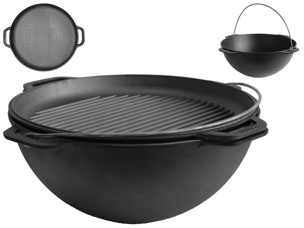 Казан азіатський чавунний Brizoll "Азія" чавунна кришка-гриль 15л KA15-4