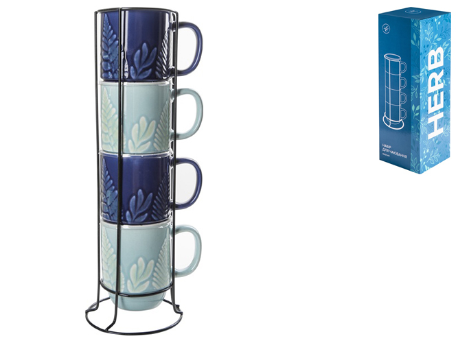 Набір чашок Limited Edition Herb, на підставці, 420мл (ціна за набір 5 предметів) 6900069073882