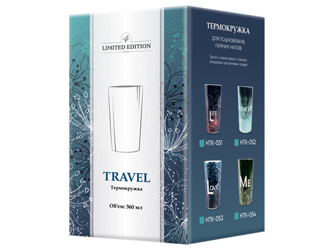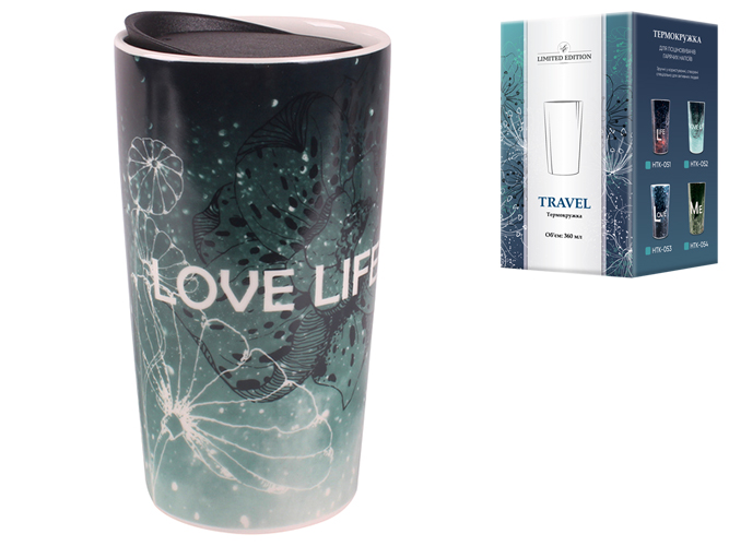 Термокухоль з кришкою Limited Edition Travel Love Life. Матеріал кружки: порцеляна (подвійна фарфорова стінка). Матеріал кришки: пластик. Об'єм: 360мл. Колір: блакитний. Призначення: для чаю/кави. Кількість предметів: 2 шт (чашка+кришка). У подарунковій упаковці.