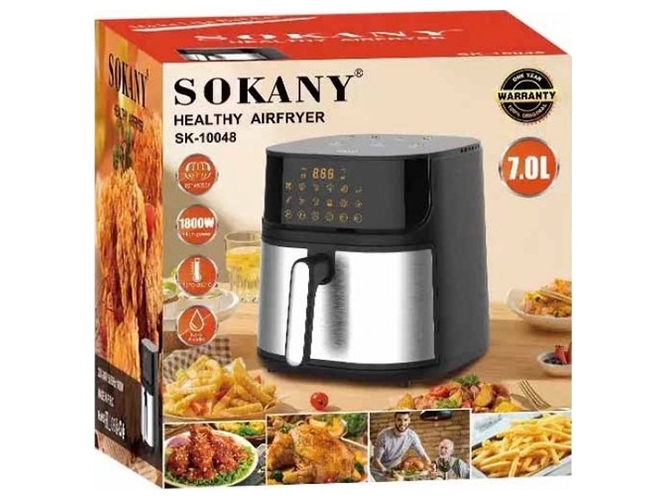 Аэрофритюрниця це стильний та високотехнологічний прилад, який дозволяє насолоджуватись улюбленими стравами з мінімальною кількістю олії. Завдяки потужності 1800 Вт і регульованому механічному термостату з діапазоном температур від 80 до 200 °C ця модель швидко нагрівається та забезпечує рівномірне приготування. Об'єм 7 літрів робить її ідеальною для великих порцій, що зручно для всієї родини. Також об’єднує функції випікання, смаження, запікання та грилю, допомагаючи зекономити простір на кухні. Знімні частини можна мити в посудомийній машині. Є протиковзкі ніжки. Частота: 50 Гц. Матеріал: АБС-пластик і нержавіюча сталь. Час приготування: 0-60хв. Матеріал нагрівального елемента: нержавіюча сталь. Вага: 5кг. Колір: чорний.