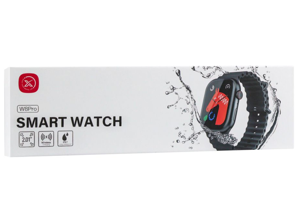 Смарт-годинник XO W8 Pro пропонує широкий спектр функцій, які зроблять життя зручнішим, активнішим і продуктивнішим. Основна рамка корпусу з цинкового сплаву, екран із загартованого скла і нижня панель з полімерного пластику (IML). Надійна збірка відповідно до стандарту IP67 - повний захист від пилу і захист від води при короткочасному зануренні. Високоякісний IPS дисплей з роздільною здатністю 240×296 пікселів за діагоналі екрана 2.01″. Механічні кнопки і чутливий сенсорний екран для зручного і швидкого управління всіма функціями. Інтуїтивно зрозумілий графічний інтерфейс із підтримкою 20 мов, включно з українською. Гібридний модуль Bluetooth V3.0/5.0 для синхронізації з пристроями під управлінням iOS і Android через додаток Wearfit Pro. Висока продуктивність: сучасний чипсет HS6621-PG і 128MB пам'яті (ROM+RAM). Близько 3 днів роботи у звичайному режимі від вбудованого акумулятора ємністю 230mAh. Бездротове заряджання за допомогою комплектного USB кабелю. Час заряджання: 2-3 години.