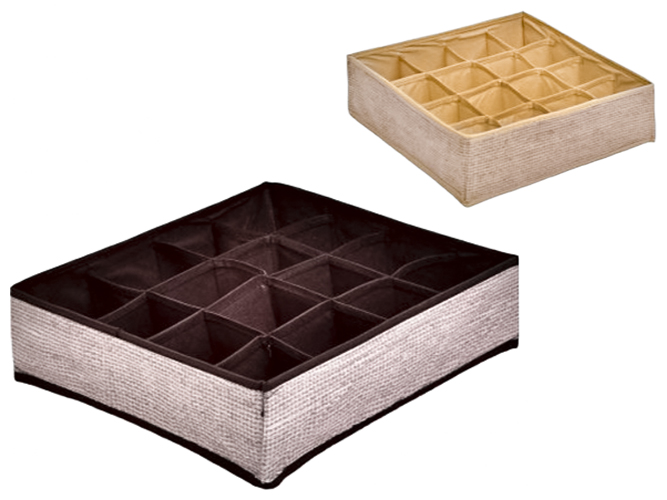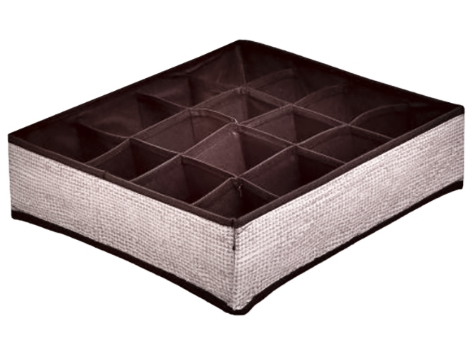 Коробка-органайзер для зберігання білизни, 16 відділень. Розмір: 30х30х10см. Матеріал: картон, неткане волокно. Кольори: коричневий, бежевий.
