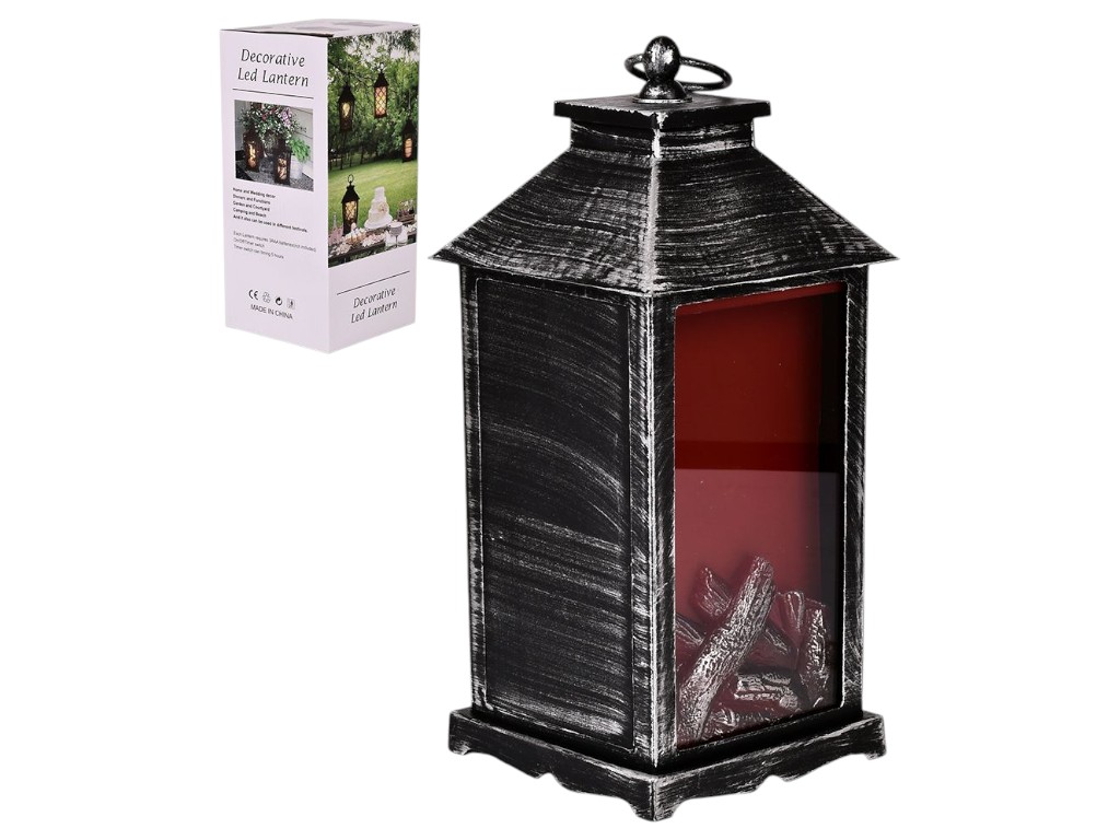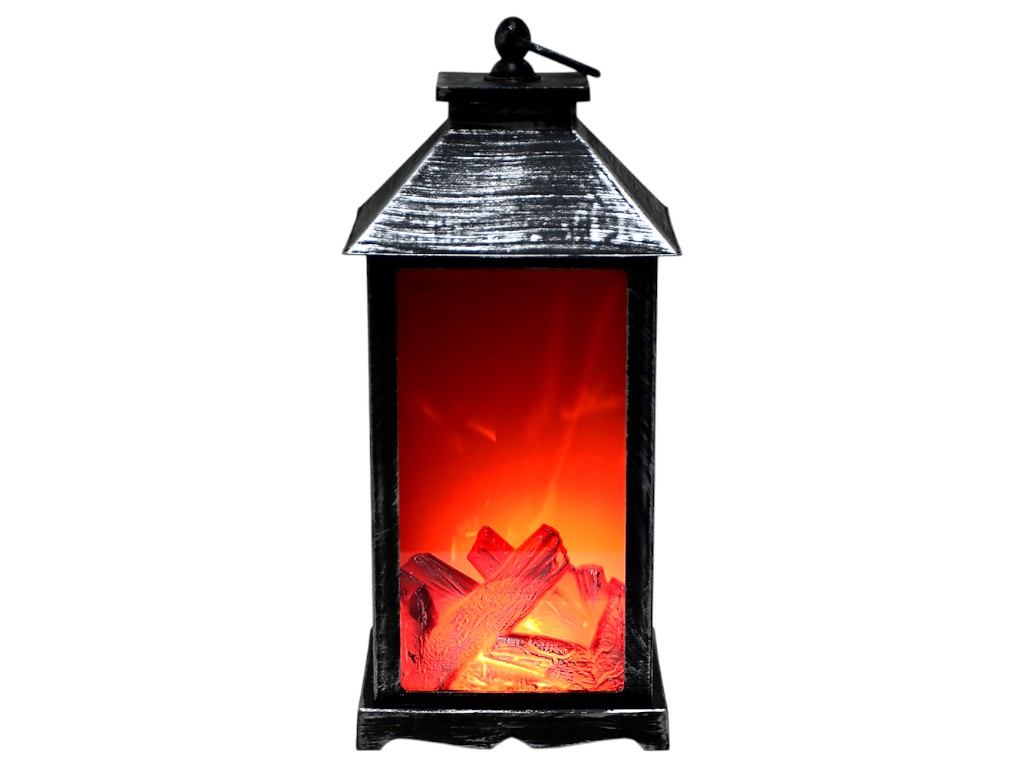 Світильник з LED підсвічуванням імітує дрова, що тліють, і призначений для декоративного оформлення інтер'єру. Працює від USB або трьох батарейок типу AAA, що дозволяє використовувати його незалежно від джерела живлення. Корпус виконаний із пластику, оформлений у вінтажному стилі та нагадує класичний ліхтар, підходить для домашнього декору та святкових композицій.