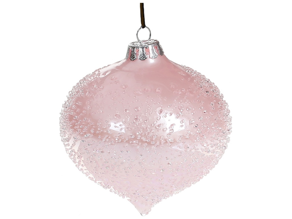 Ялинкова прикраса з покриттям лід, 10см, колір - рожевий перламутр