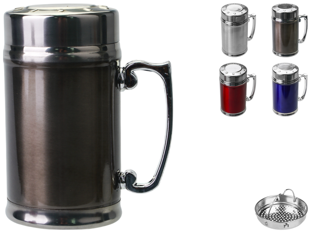 Це горнятко - термос об'ємом 300мл має подвійну теплоізоляцію, завдяки якій напої довго залишаються теплими і не нагрівають зовні. Вона чудово підходить для тих, хто проводить багато часу в дорозі і не завжди може приготувати гарячу їжу або налити собі гарячого чаю. У комплекті з кухлем йде кришка з нержавіючої сталі з різьбовим з'єднанням, яка надійно утримує тепло і запобігає протіканню рідини. Також до комплекту входить сито для чаю, що робить цей кухоль ідеальним для любителів чаю в дорозі або на роботі. Висота: 14,5см. Довжина з ручкою: 11,5см. Діаметр по верху: 7,8см. Діаметр по низу: 8см. Розмір ситечка: діаметр 6,4см, висота 1,8см,