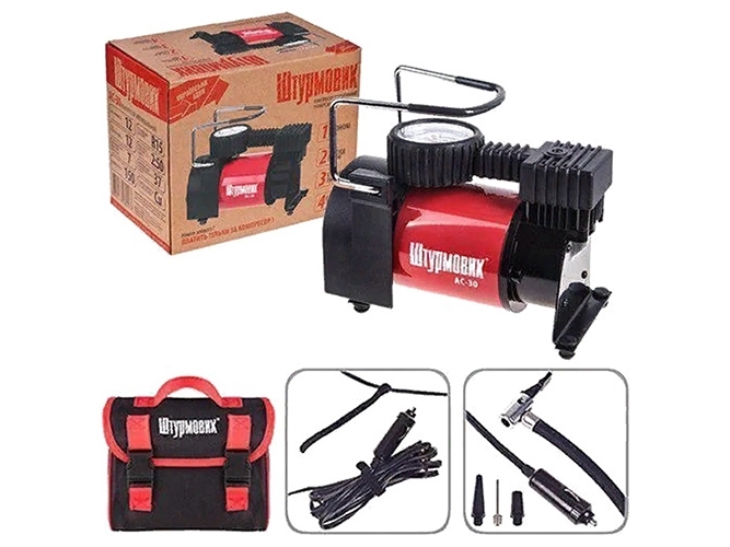 Вид компресора: однопоршневий. Додаткова комплектація: перехідник для спортінвентарю. Максимальний тиск, атм: 10. Манометр: аналоговий. Продуктивність, л/хв: 30-40. Рекомендований для коліс: R13 - R16. Сумка для перенесення. Тип компресора: поршневий. Тип підключення: гніздо прикурювача. Корпус з металу.