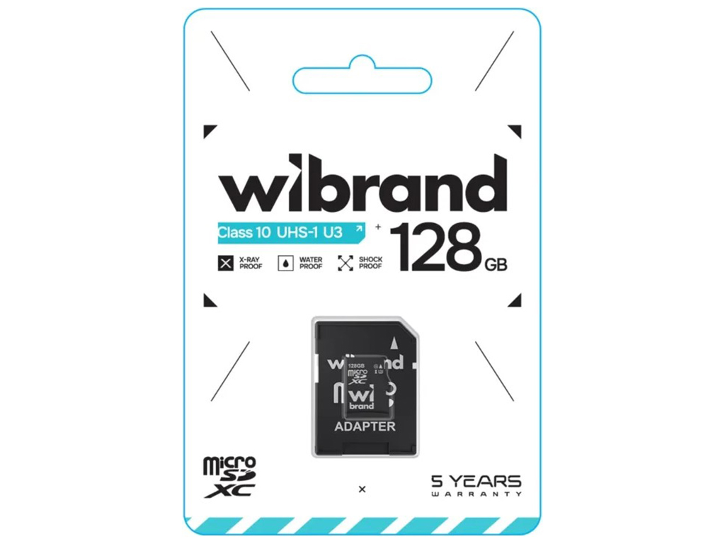 Карта Пам'яті Wibrand мicroSDHC 128gb UHS-1 10 Class & Adapter Колір Чорний