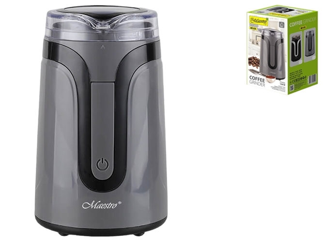 Кавомолка Maestro. Місткість: 50г. Потужність: 220-240В, ~50Гц, 150Вт. Ергономічний дизайн. Ніж з нержавіючої сталі. Автоматична система блокування. Імпульсний режим роботи.