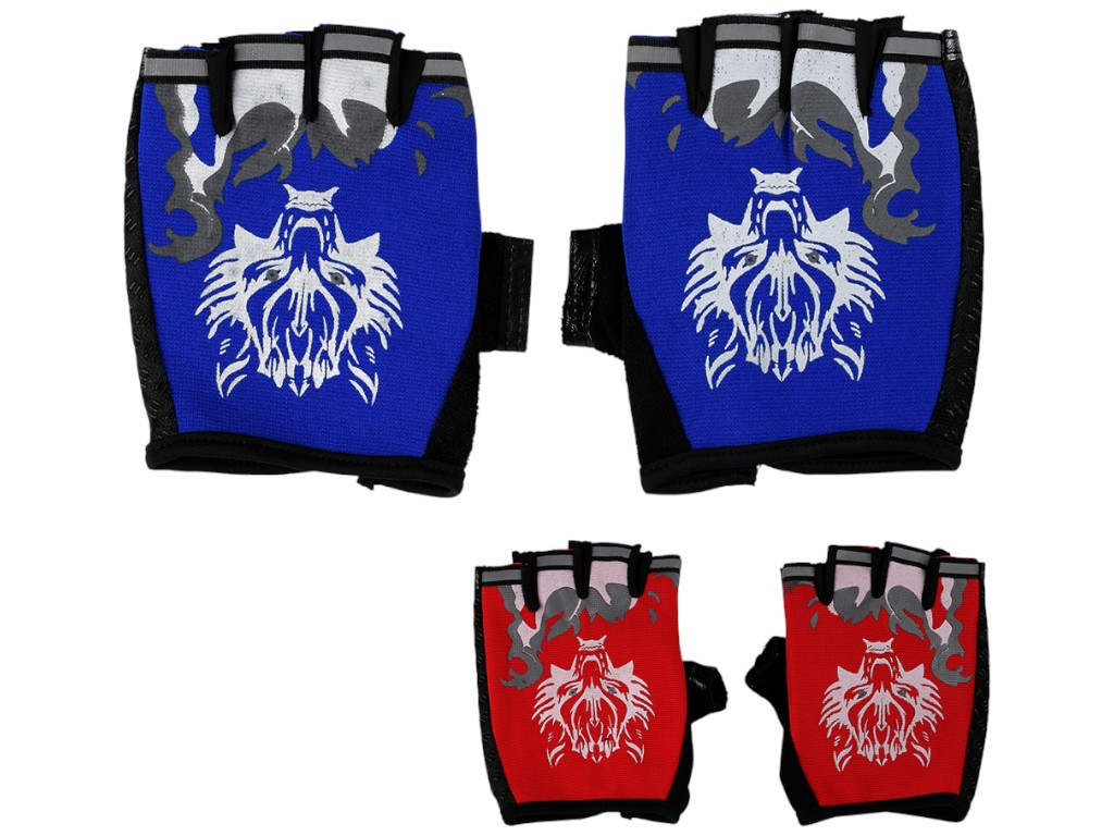 Велорукавички з укороченими пальцями призначені для комфортного керування кермом та захисту рук під час тривалих поїздок. Виріб виконаний із поліестеру — легкого й еластичного матеріалу, який зберігає форму та не перегрівається. Верхня частина прикрашена яскравим принтом із зображенням вовка. Зона долоні виконана з нековзної тканини з мікропокриттям, що покращує зчеплення з кермом. Краї посилені міцною окантовкою, яка запобігає деформації під час частого використання. М’які вставки на внутрішній стороні пом’якшують контакт і роблять хват стійким. Модель підходить для катання на велосипеді, самокаті чи роликах, а також для тренувань на вулиці. В асортименті представлені два варіанти кольору — синій та червоний. Рукавички зручно знімати за допомогою невеликих петель, тканина швидко висихає після прання. Постачаються в індивідуальному пакеті.