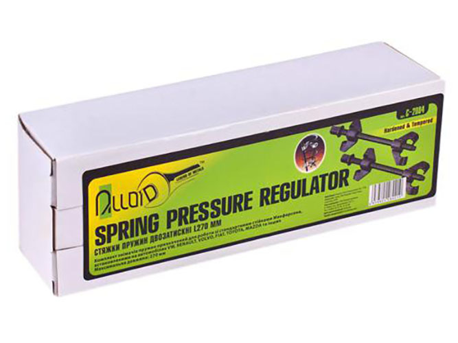 Стяжка пружин Alloid С-2004 — це спеціалізований інструмент для безпечного та ефективного демонтажу та монтажу пружин під час ремонту амортизаторів на автомобілях з ходовою типу McPherson. Використовується як на професійних СТО, так і в домашніх умовах. Конструкція з двома гаками на кожному боці забезпечує надійне захоплення витків пружини без ризику зсуву. Комплект включає дві стяжки, виготовлені з загартованої хромванадієвої сталі для максимальної міцності та довговічності. Робоча довжина кожного гвинта — 270 мм, що дозволяє працювати з пружинами різних розмірів. Ідеально підходить для швидкої та безпечної заміни пружин та амортизаторів.