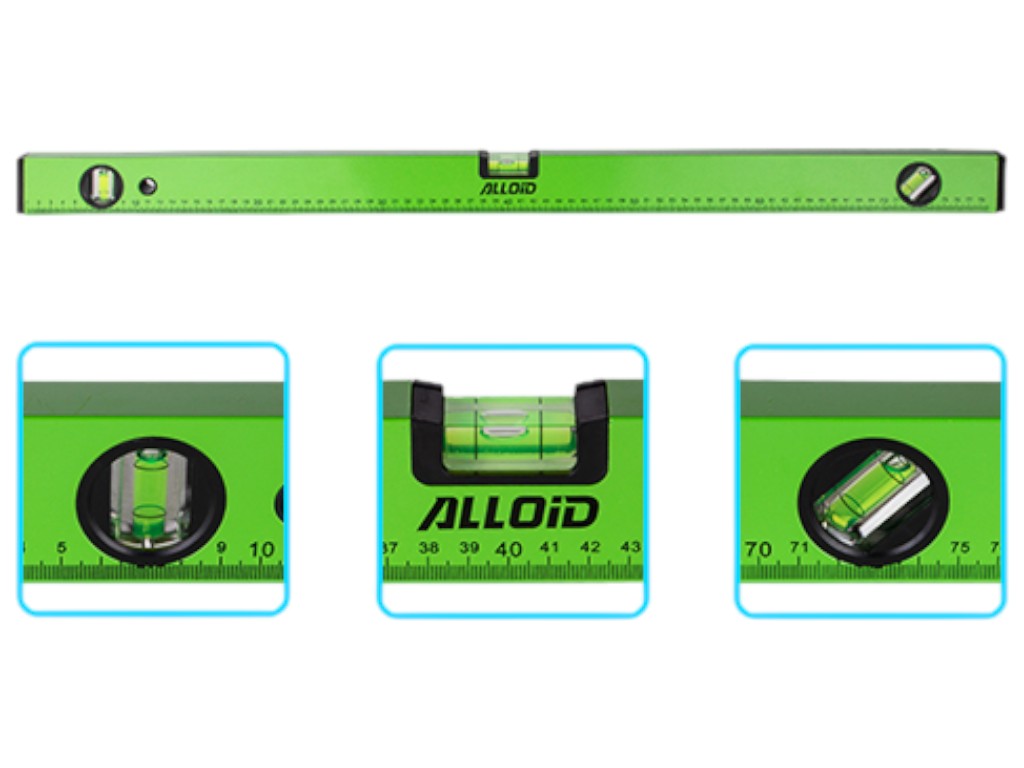 Три високоточні капсули, відкалібровані під кутами 0°, 90° та 45°, забезпечують коректний вимір горизонталі, вертикалі та нахилу. Міцний корпус з анодованого алюмінію з ребрами твердості стійкий до деформацій, а міліметрова шкала нанесена по всій довжині для точної розмітки. Бокове та верхнє вікна зчитування спрощують контроль за положенням інструмента в різних робочих умовах.