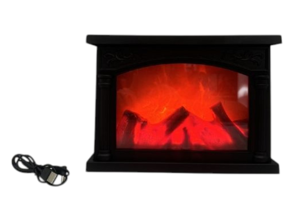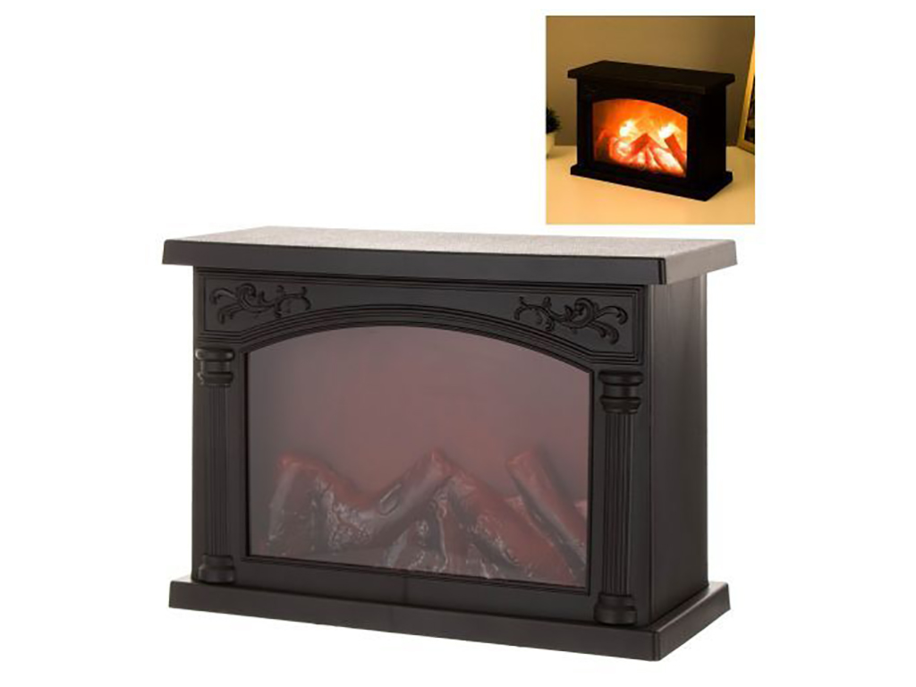 Декоративний світильник з LED підсвічуванням імітує полум'я та поління, що тліє, застосовується для створення атмосфери затишку в інтер'єрі. Підтримує живлення від USB або трьох батарейок типу AAA. Корпус із пластику оформлений у вигляді класичного міні-каміна з рельєфними елементами та використовується в домашньому чи сезонному декорі.