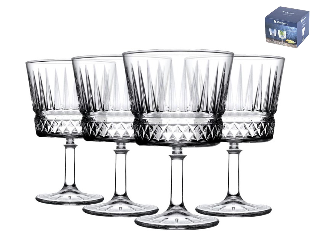 Призначені для подачі коктейлів та інших напоїв. Виготовлені з міцного скла з рельєфним візерунком, який надає келихам елегантного та стильного вигляду. Висока ніжка та стійка форма роблять ці келихи ідеальними для використання у кафе, ресторанах чи вдома. Підходять для щоденного використання.
