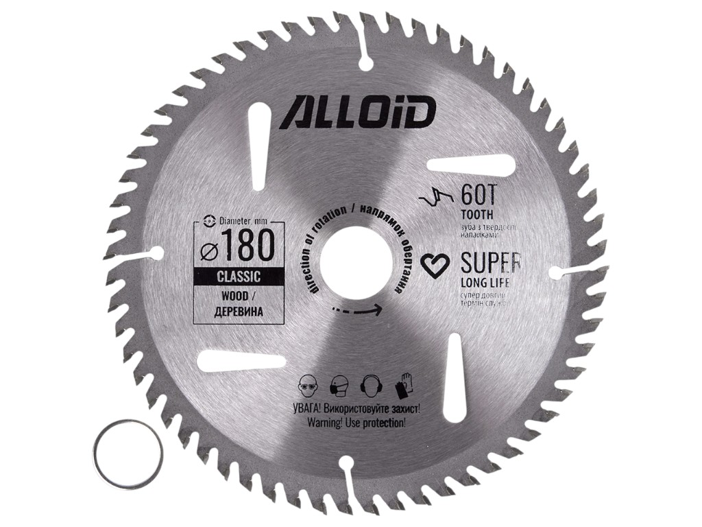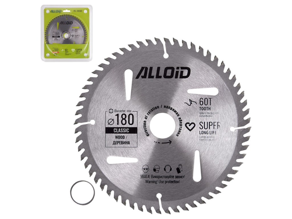 Диск пильний Alloid по дереву, 60 зубів, твердосплавні напайки, 180x25,4/22,2мм