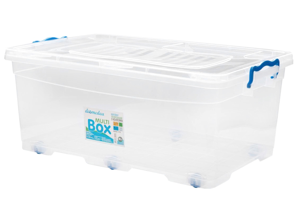 Контейнер MultiBox В-45 являє собою універсальний і багатофункціональний засіб для ефективної організації зберігання різних предметів. Забезпечений шістьма коліщатками і зручними ручками для перенесення, він забезпечує високу мобільність і легкість використання. Завдяки своїм компактним розмірам і місткому внутрішньому простору, контейнер MultiBox В-45 ідеально підходить для зберігання різноманітних предметів різної форми і розміру. Прозора кришка дає змогу легко переглядати вміст, а зручні ручки забезпечують комфортне переміщення. Цей контейнер підійде для використання як у домашніх умовах, так і на робочому місці або в інших сферах, де потрібне компактне і зручне рішення для зберігання і транспортування різних предметів. Основні характеристики контейнера: розміри з кришкою 62х40х27см, розміри внутрішнього простору 56х36х21,5см, діаметр коліс 3см, об'єм 40л.