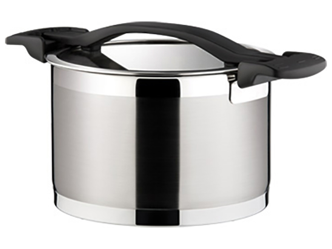 Унікальна кришка виготовлена зі скла і неіржавіючої сталі з 3 робочими позиціями. Отвір для пару закритий - швидке закипання і підігрів їжі з економією енергії. Невеликий отвір для пару - зручне приготування їжі без википання рідини через край, а також для зціджування рідини навіть при дрібно нарізану овочах. Великий отвір для зціджування - для швидкого приготування їжі без википання рідини через край, зціджування рідини з картоплі або макаронних виробів. Зняту кришку можна помістити на ручку таким чином, щоб конденсат стікав назад в каструлю. Оснащене дуже міцним сендвіч-дном, шкала для зручного відмірювання, ручки з міцної пластмаси. Виготовлено з високоякісної нержавіючої сталі. Матеріал кришки: пластик. Сумісність з джерелами тепла: газові, електричні, склокерамічні, індукційні.