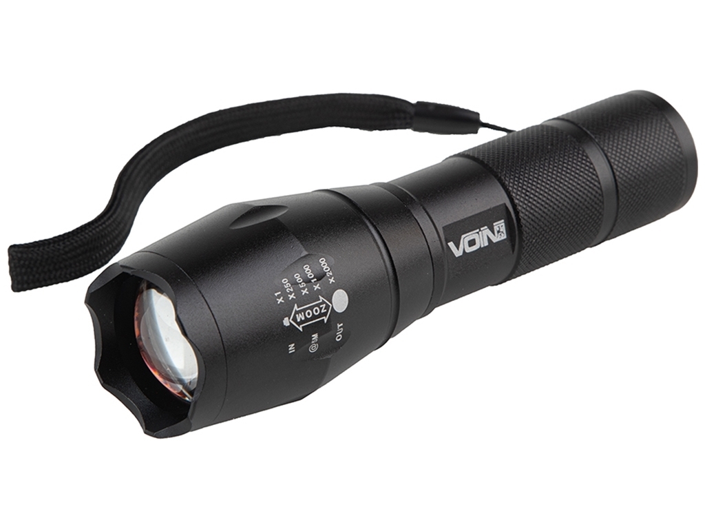 Ліхтарик ручний VOIN VL-8012, LED T6, 300Lm, зум, алюміній, 1х18650 или (3хААА не в комплекті)