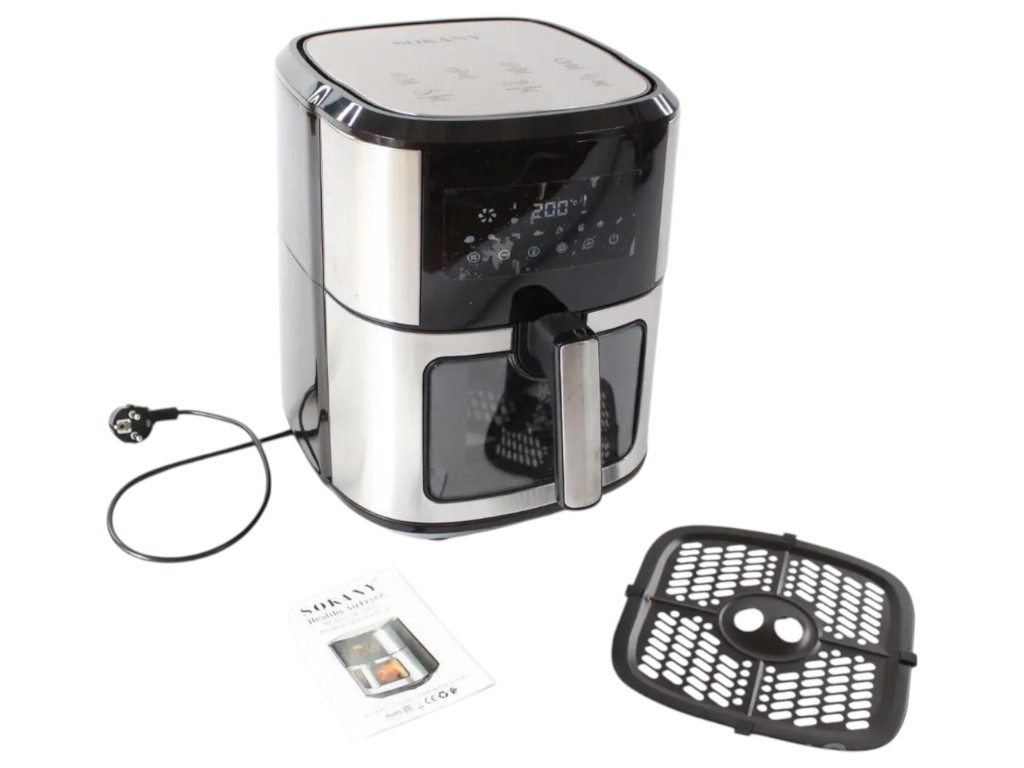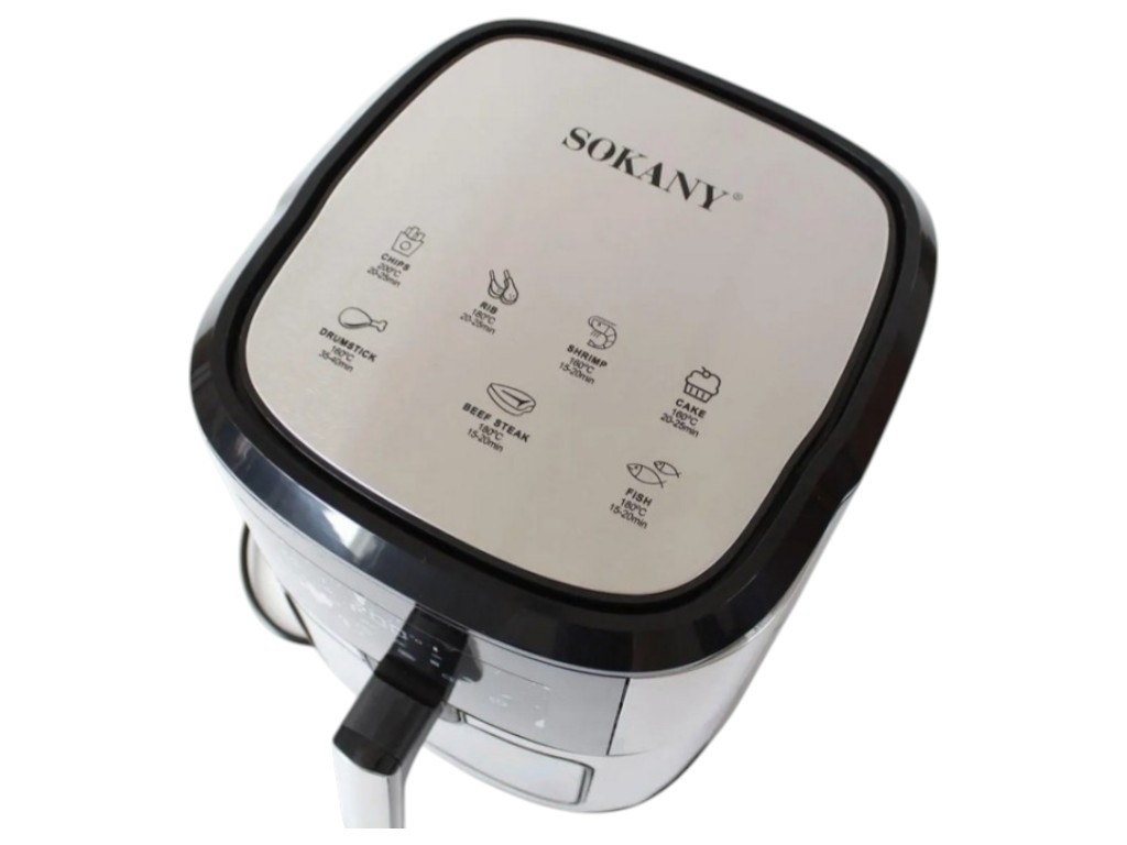 Аерофритюрниця Sokany, 1800Вт, електронне управління, 80-200°C, 60 хв, 8,5 л, колір сталь з чорним