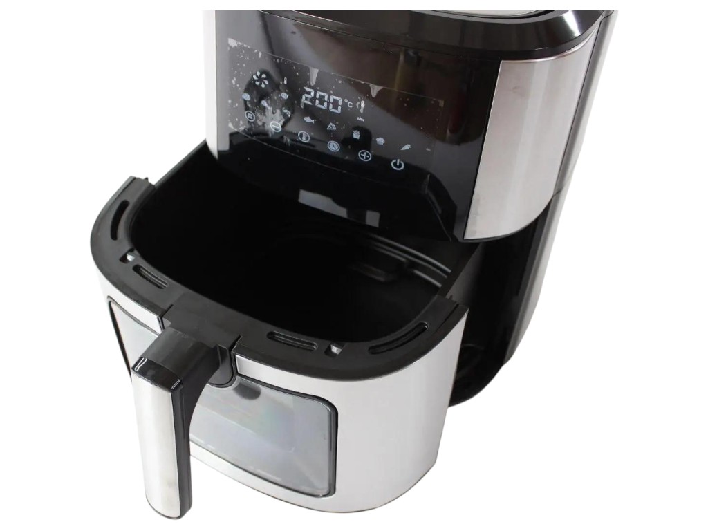 Призначена для смаження, запікання та розігріву страв без олії або з її мінімальною кількістю. Оснащена антипригарною знімною чашею об'ємом 8.5 літра та нагрівальним елементом потужністю 1800 Вт. Керується електронно та дозволяє встановлювати температуру в діапазоні від 80 до 200 °C. Таймер на 60 хвилин та захист від перегріву підвищують безпеку експлуатації. Протиковзні ніжки забезпечують стійкість, а корпус виконаний з металу та пластику.
