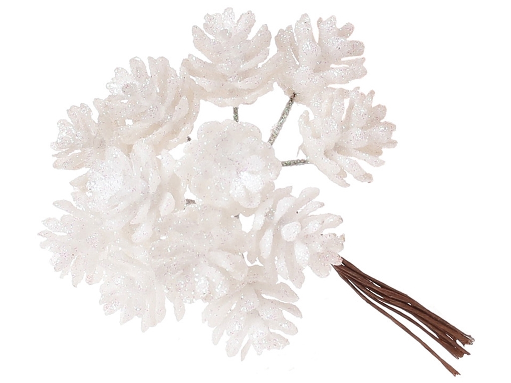 Міні - шишки декоративні 12шт у пучку, 12см, колір - білий