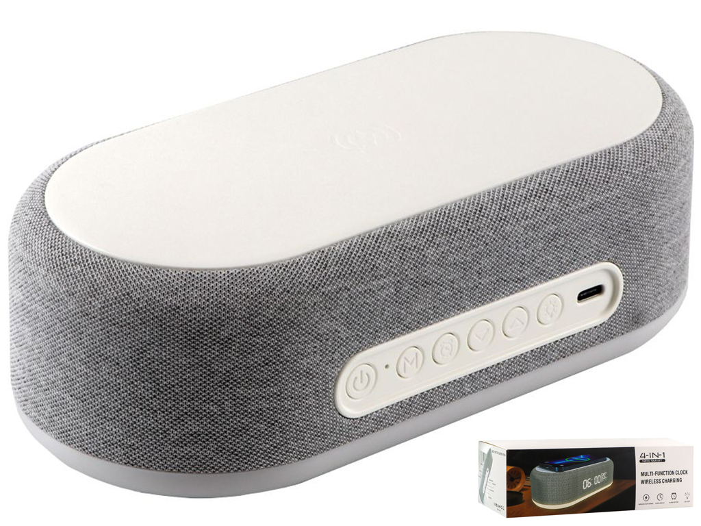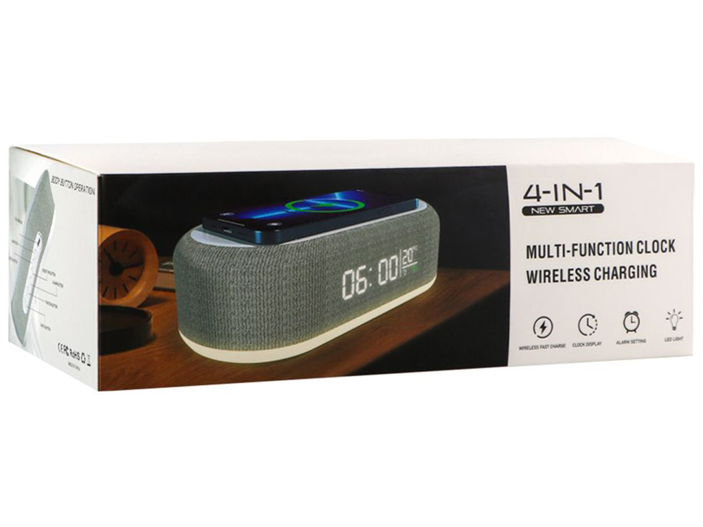 Це стильний багатофункціональний аксесуар, який зробить процес зарядки сучасних смартфонів максимально зручним і надасть деякі інші корисні можливості. Він лаконічно поєднує в собі функції відразу кількох пристроїв: цифрового годинника з будильником, електронного термометра, нічника та бездротового зарядного пристрою. Модель виділяється привабливим зовнішнім виглядом та якісним виконанням. Завдяки компактним розмірам і практичній, обтічній формі, вона стане стильною деталлю будь-якого інтер'єру - може встановлюватися у вітальні на журнальному столику, в спальні на тумбі або в кабінеті на робочому столі. Корпус пристрою надійно зібраний та виготовлений із міцного пластику.