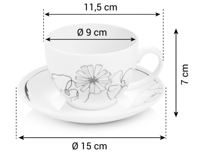 Чашка з блюдцем myCOFFEE об'ємом 250мл призначена спеціально для подачі чаю, капучино. Виготовлена з тонкостінного фарфору, який відрізняється надзвичайною білизною та високою стійкістю. Він тонкий, тому легкий і водночас дуже міцний. Матеріал: тонкостінна порцеляна. Очищення: можна мити в посудомийній машині. Діаметр блюдця: 15см. Діаметр чашки: 9см.
