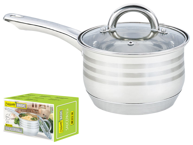 Ківш з кришкою Maestro нержавіюча сталь, всі типи плит, 9-шарове термоакумулююче дно 2,1л D16см