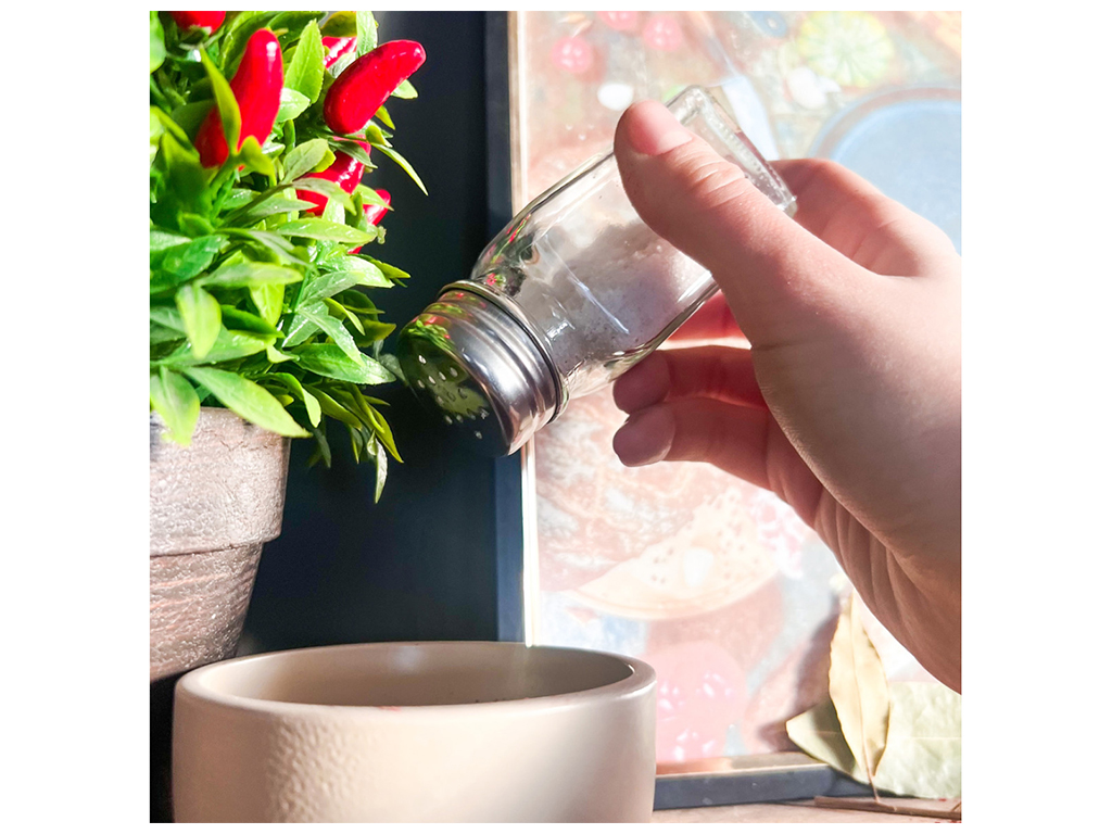 Сільниця/перечниця має класичний та практичний дизайн, що забезпечує зручність використання. Виготовлена з прозорого скла, вона дозволяє легко контролювати рівень вмісту. Її форма прямокутна з м'яко округленими краями, що забезпечує зручне тримання у руці. Кришка виконана з нержавіючої сталі та оснащена рівномірно розташованими отворами для рівного дозування солі або перцю. Вона надійно фіксується на банці, запобігаючи випадковому відкриванню. Завдяки своїм компактним розмірам ідеально підходить як для домашнього використання, так і для сервірування у кафе чи ресторанах.