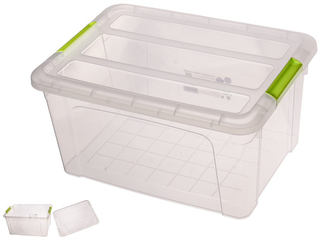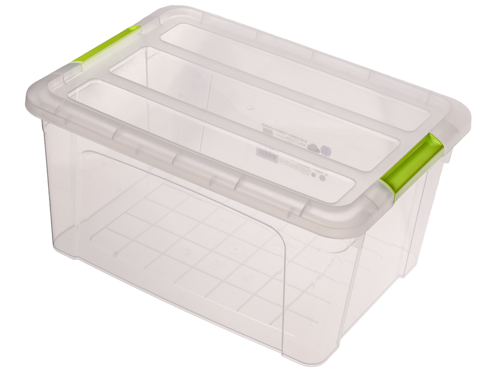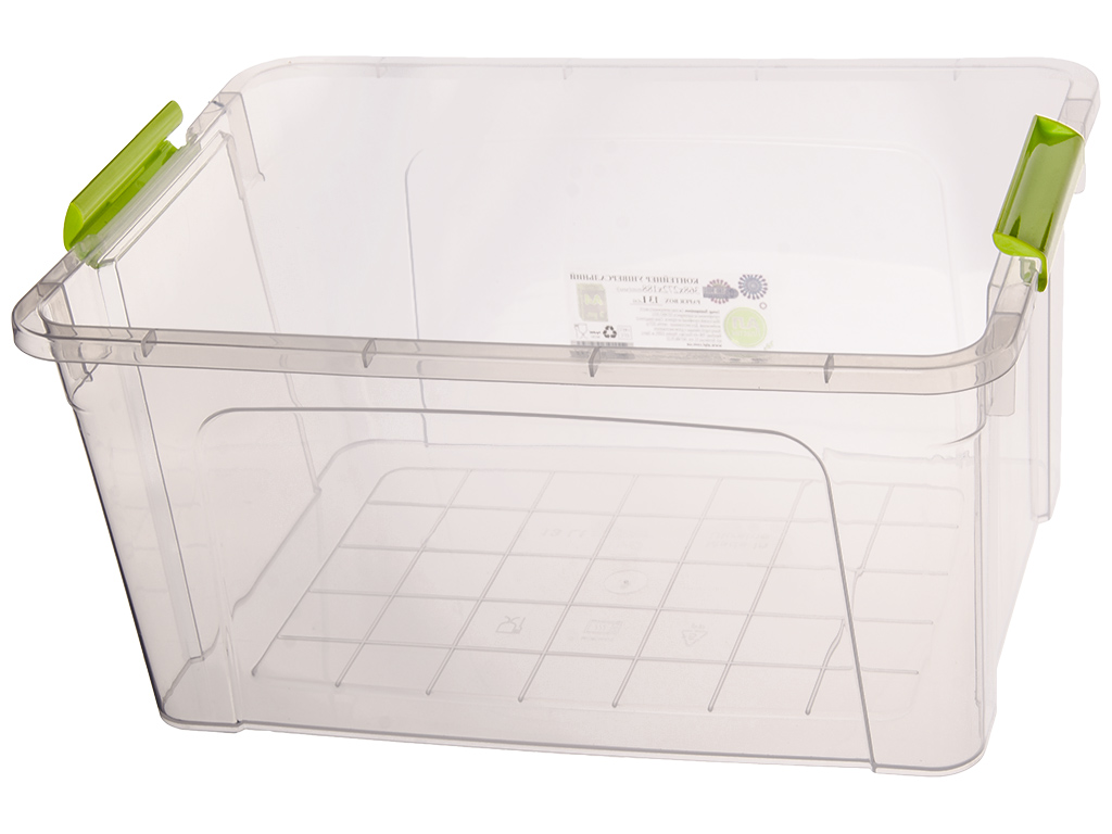 Розмір контейнера: 36,8х27,2х18,8см. Об'єм: 13л. Матеріал: поліпропілен. Місткість: три упаковки паперу формату А4. Кришка закривається на замки засувки з 2 сторін. Харчовий контейнер для зручної роботи на кухні. Прозорі стінки і кришка допоможуть швидко знайти потрібне. Кришка без ущільнювача. Засувки пофарбовані харчовим барвником салатового кольору. Контейнер призначений для харчових продуктів і організації зберігання. Без упаковки.