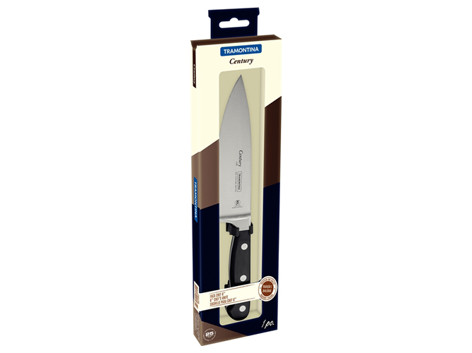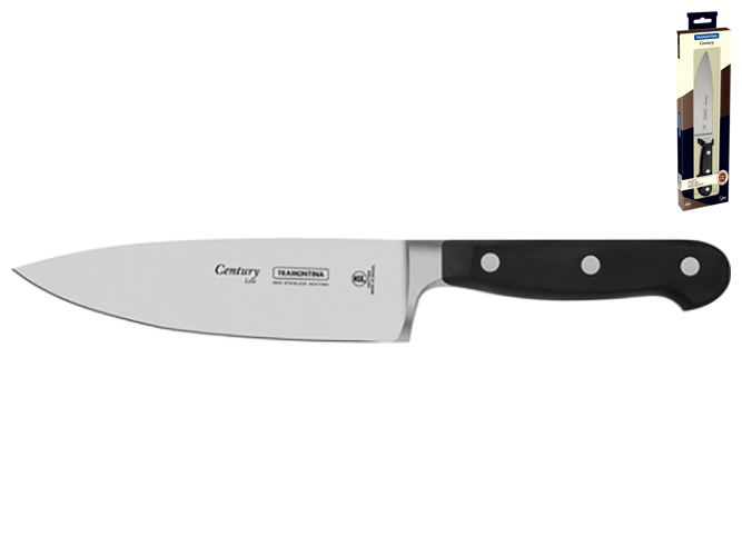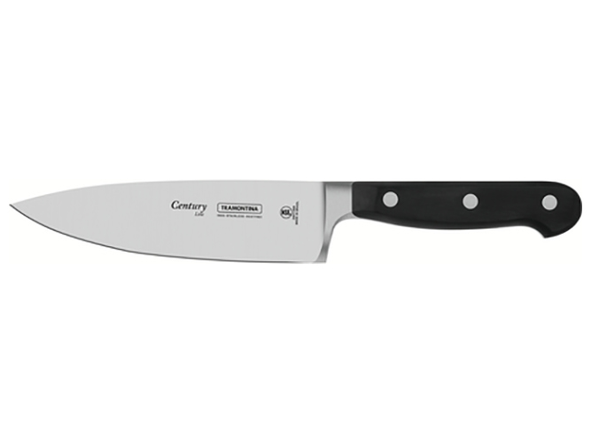 Ніж універсальний Tramontina Century, 15,2см. Матеріал леза: нержавіюча сталь. Товщина леза: 2,5мм. Матеріал ручки: полікарбонат. Ріжучий край ножа: гладкий. Руків'я витримує температуру 200˚С. Можна мити в посудомийній машині. Колір: чорний.