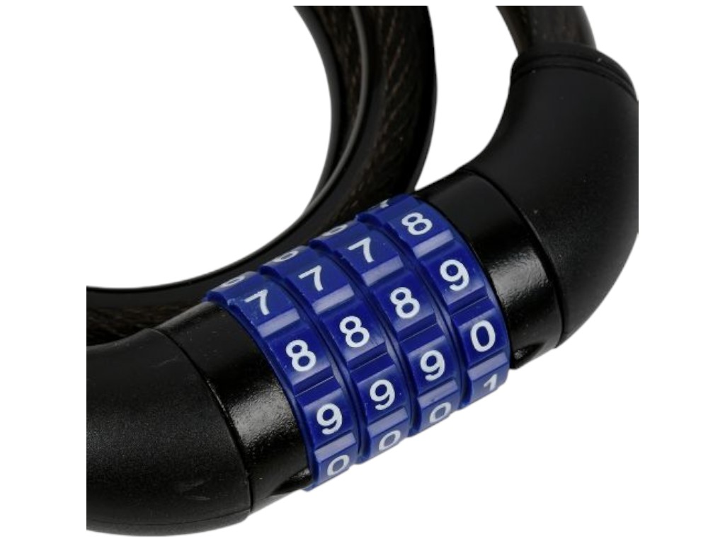 Кодовий велосипедний замок призначений для захисту велосипеда, самоката чи іншого транспорту під час стоянки. Міцна металева основа діаметром 12 мм покрита гнучкою пластиковою оболонкою, яка запобігає появі подряпин на рамі та захищає трос від вологи. Замок оснащений механічним кодовим механізмом із обертовими цифрами, що виключає необхідність використання ключів. Трос довжиною 80 см зручний для фіксації до стійок, огорож та інших об’єктів. Матеріали стійкі до корозії та механічного зношування, корпус виконаний із щільного пластику, що надійно утримує елементи замка. Конструкція гнучка, трос легко згортається та займає мінімум місця під час зберігання. Виріб підходить для щоденного використання й простий у застосуванні. Для догляду корпус очищається м’якою тканиною без абразивних засобів. Постачається на кольоровій підкладці.