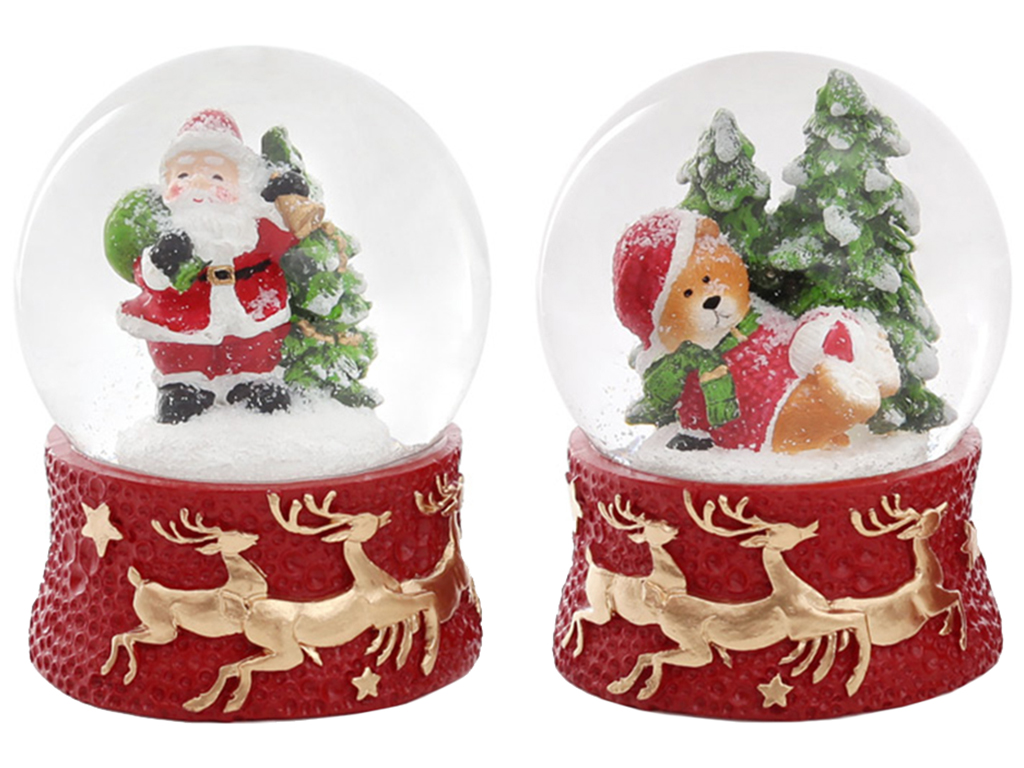 Декоративна водяна куля 9см, 2 дизайни, Санта, Ведмедик, 129-035