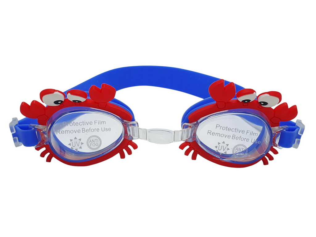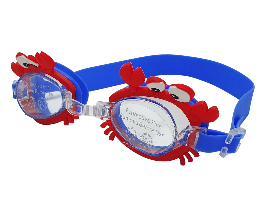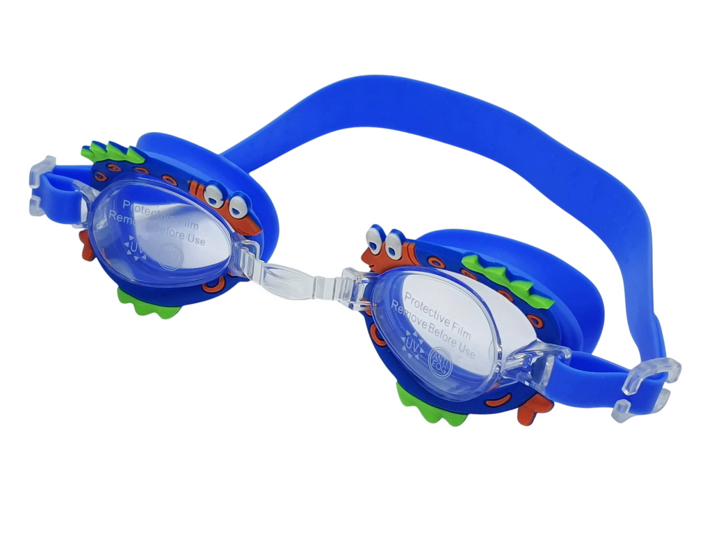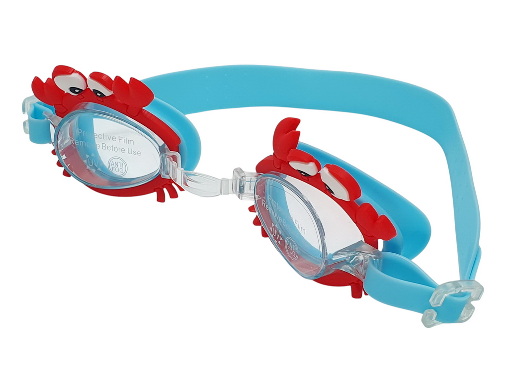 Веселі дитячі окуляри для плавання з 3D-дизайнами у вигляді крабів, динозаврів, єдинорогів та інших морських героїв. Забезпечують захист очей під водою і дарують радість кожному плаванню. М’який силіконовий ущільнювач і регульований ремінець гарантують комфортне прилягання. Лінзи мають антифог-покриття та захист від ультрафіолету. У комплекті футляр і беруші.